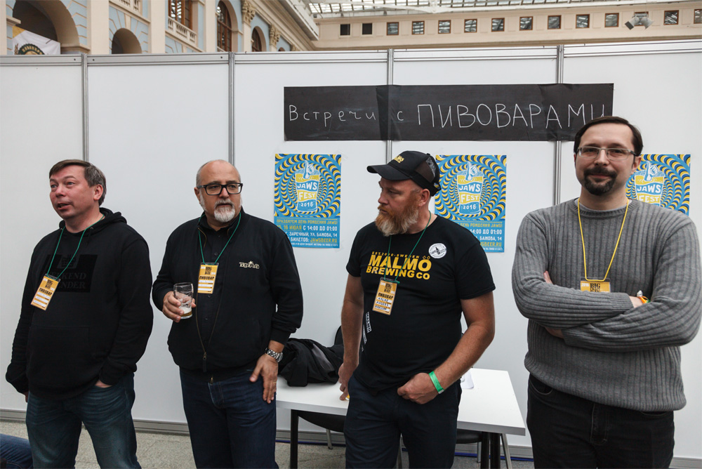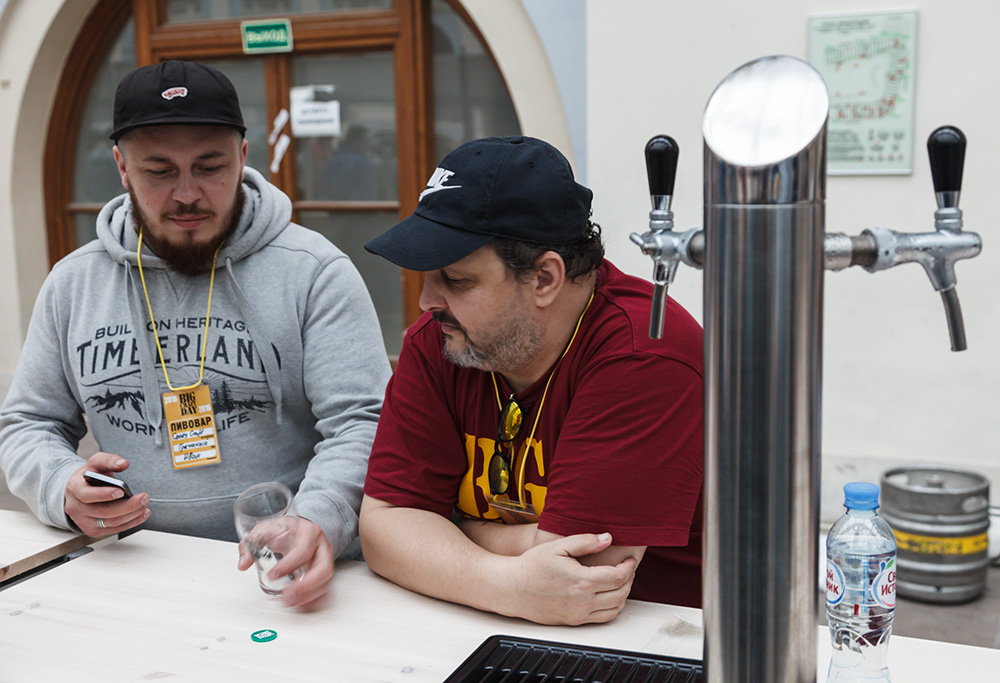 О питом пиве, расскажу отдельно (всего попробовал 31 сорт по 100 или 200 мл. и еще с пяток - по глоточку), только несколько слов о нашем "Союзе Южно-Московских Пивоваров". Фактически, на фестивале участвовало 4 наших сорта - черноголовский "Beer Head" наливал наше совместное творение, портер "Вынос тела", а также "Сварогъ", сваренный совместно с Мишей Веневцевым. Миша и его "Zdechly vrabec", выставлялись отдельно и наливали русский имперский стаут "Луи Амстронг", и уже под именем "Союз Южно-Московских Пивоваров" была наша "Хурмуруза" (эти два сорта также сварены на "Beer Head").