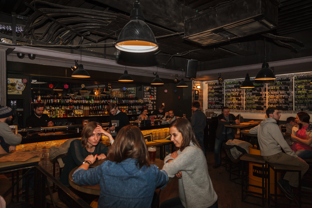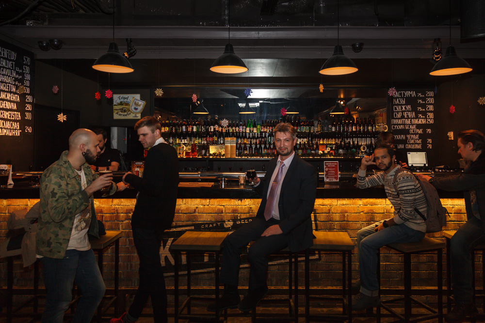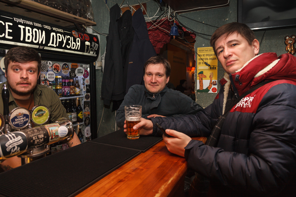Наконец, из "Всех твоих друзей" отправились в "Крапиву", где Константин Елкин и Василий Смирнов представили "KRAPIVA" - новый фирменный зимний сорт бара сваренный с участием "Velka Morava". Это пиво в стиле молочного стаута - вышло богатым и гармоничным. Отличные темные солода, сбалансированная сладость, которая дает ощущение очень полного тела. Пиво некоторое время выдерживалось в бочке, но бочка для вкуса мало что дала, возможно нужно было подержать дольше.