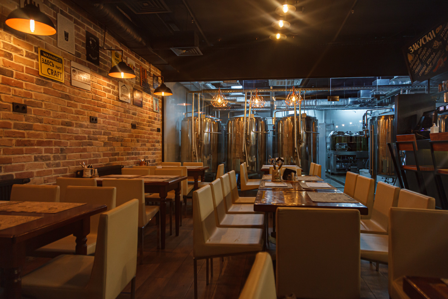 На Дмитровском шоссе, у станции метро Верхние Лихоборы, в прошлом году открылся бар с собственной пивоварней "Hop Dog". Расположен он в подвале под торговым центром "Метромолл" (попасть в него можно с внутреннего дворика ТЦ). Кстати, помещение не арендуется, а находится в собственности у владельца пивоварни. Бар и пивоварня небольшие, оборудование - отечественное, из города Воронеж. Варочник примерно на 750 л., он расположен в глубине пивоварни, а сразу за стеклом из бара видны танки брожения. Производятся только лагеры (по словам бармена, сбродить эли не позволяет оборудование, хотя я не понимаю в чем может быть причина, как раз сбраживать эли куда как проще чем лагеры). Бар из одного зала, с барной стойкой и кухней. Оформление простенькое, но вполне уютное. Чем-то "Hop Dog" напоминает расположенный по соседству еще один бар с пивоварней - "Ховрино".