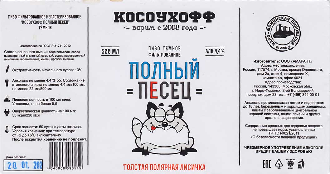 Два темных сорта от наро-фоминского "Амаранта" под брендами "Бреггир" и "Косоухофф". "Английский стаут" - неплохое темное пиво, хотя ближе к дункелю и даже цвет - скорее полутемный. "Полный песец" - ну а это, по обычаю не выжило и уже кислило...