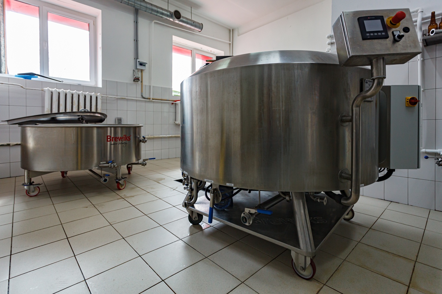 В Солнечногорском районе Московской области, в деревне Новая, с 2020-го года работает пивоварня "ДорБир". Ее основателем, директором и пивоваром является Евгений Доронин. Евгений закончил в 2007-м году "Московский государственный университет пищевых производств", факультет - "Машины и аппараты пищевых производств". В 2020-м году, перед запуском собственной пивоварни, учится в Словении в "Институте хмелеводства и пивоварения", получил сертификат что позволяет ему работать пивоваром в странах Евросоюза. Потому и выбор оборудования для пивоварни делал осознано и оно очень интересное - варочный порядок от компании Mithraeum из Словении занимающейся производством оборудования для пищевой промышленности, в том числе и пивоваренной. Пивоварня модели Brewiks 500 - то есть на 500 литров, хотя максимально можно сварить 650 литров сусла. Перемешивание сусла в заторно-сусловарочном котле осуществляется с помощью насоса - сусло засасывается через отверстие в дне и потом возвращается под углом, закручивая сусло. Через это же отверстие насосом выкачивается и дробина, что очень удобно. В котле не только нагревается и кипятится сусло, но оно же в нем и охлаждается, когда в терморубашке курсирует холодная вода. Дно у варочника наклонное в сторону отверстия для забора сусла. Затирание эффективное, фактически хороший солод можно осахарить за полчаса. При варке пар выходит через трубу в которой конденсируется и выливается в канализацию уже как вода. Фильтрчан очень широкий и низкий, так что фильтрация тоже проходит быстро - неплотные сорта фильтруются тоже за полчаса. Дно тоже заметно наклонено в сторону заборного отверстия. Сита легко снимаются и тогда фильтрчан становится вирпулом - есть отверстие для подачи сусла под напором и под углом, для его закручивания. И варочник и фильтрчан - довольно легкие и мобильные, они установлены на колесиках. В итоге, полный процесс варки занимает 4 часа, так что в день можно сделать две варки и получать до 1,3 тонны сусла в сутки. Танки брожения (ЦКТ) - самые различные, объемом 0,6, 1,2 и 2,5 тонны. Производитель - хорватская Letina и китайская BTQM. Из дополнительного оборудования - мощная солододробилка, серьезная водоподготовка, фильтр (лагера, в основном, фильтруются). Помещение где расположена пивоварня ранее являлось пищеблоком, так что оно приспособлено под пищевое производство. Сохранились помещения с дверьми времен СССР, в них сейчас организованы холодильники для хранения готовой продукции. Основная часть пива разливается в кеги, часть в бутылки и есть простая линия розлива на 2 бутылки. Пиво можно купить в фирменном магазине - он расположен в Москве, Ангелов переулок 9 (Митино). Также пиво продается в магазинах разливного пива Солнечногорска и в других местах.